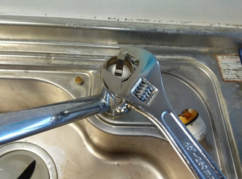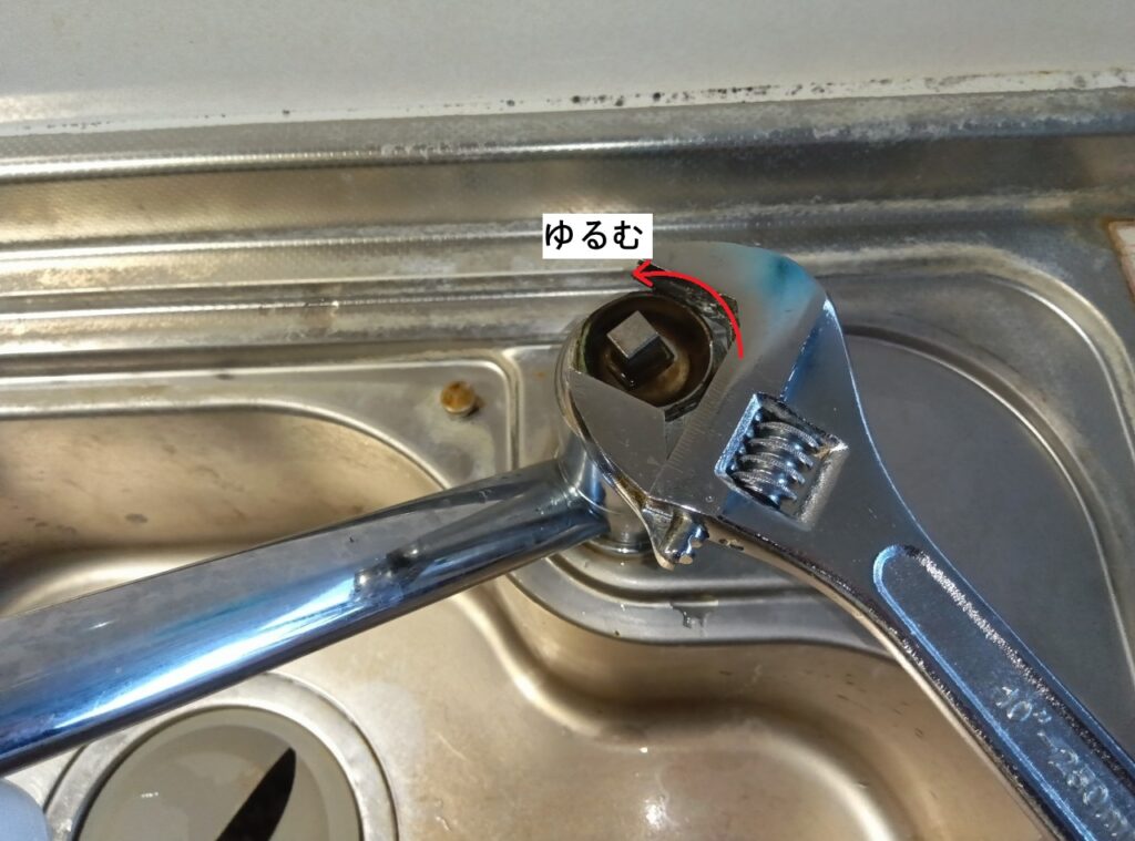 こちらの水栓は、固定用工具をかける穴などは無いため、コーナーレンチなどで本体を固定する場合もあります。