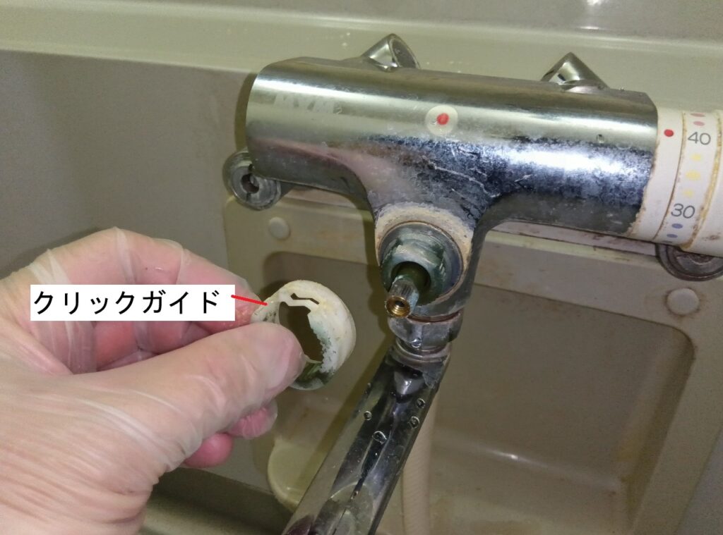 本体側に残っているクリックガイドも、水栓本体から、いったん取り外します。