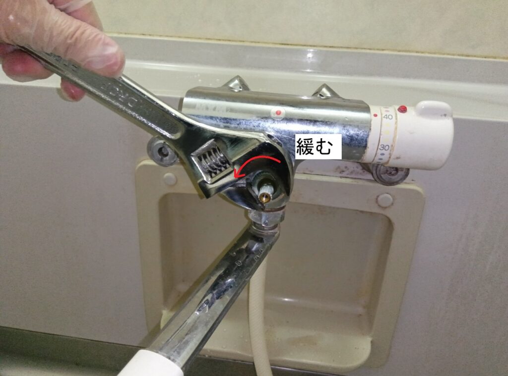 止水栓を閉め、水・湯が止まった状態で行ってください。