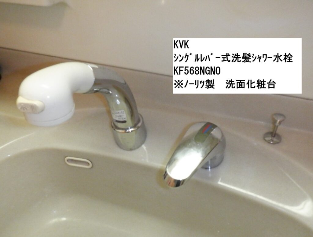 KVK KF568NGNO【シャワーホース交換、カートリッジ交換方法】 洗面シングルレバー式シャワー水栓 <シャワーホースから水漏れ。レバーを下げても水が止まらない。>修理方法 ※ノーリツ製 洗面化粧台