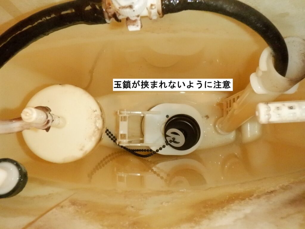 外したロータンクのフタは、下面を床に付けない様に注意しましょう。